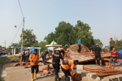 Petugas BPBD setempat bersama aparat dan masyarakat melakukan gotong royong serta memangkas pohon dan dahan lapuk yang membahayakan warga.
